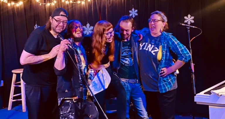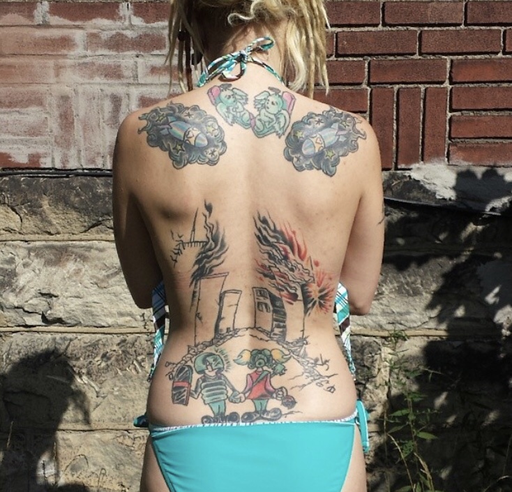 I sat on the upper level of the roof, above the Castle, with my dear friend Nick Graybeal a.k.a. Judah Sledgehammer. After hanging drywall in The Lit Room, our venue, we sat idly on yoga mats, watching the sun descend and the fireworks splay out, brighter and brighter against the darkening sky. We decided it a good idea to climb our building’s rusting, wobbling ladder to a higher vantage point for yoga and our neighborhood’s light show.